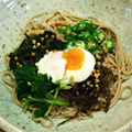 非常に粘りの強い『がごめ昆布』とめかぶ、それにオクラを加えた食物繊維いっぱいのねばねば蕎麦です。